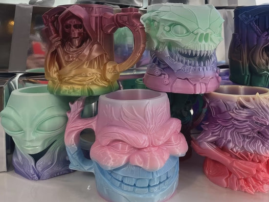 These futuristic can holding mugs are perfect for anyone, regardless of age. Standing at 5 inches tall, they are eye-catching and distinctive at any event or gathering. Each piece is one-of-a-kind, with its own unique coloring. Made in America using 3D printing technology, these gifts are truly exceptional. Order yours today!